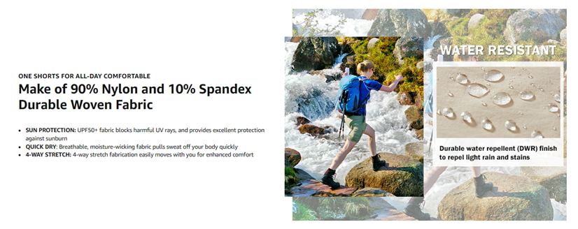 ADVANCED TECHNOLOGY: 4-way stretch, breathable fabric wicks moisture away from your skin to keep dry all day. Durable water repellent finish to repel light rain and stains
