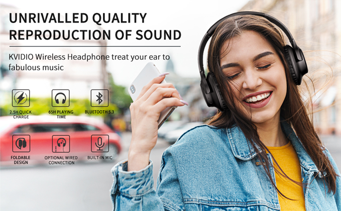 - HIGH FIDELITY STEREO HEADPHONES: KVIDIO upgraded bluetooth headphones with dual 40mm drivers and noise isolation technology, offers an almost concert hall-like feel to your favorite music as close as you're watching it live. Provide high-quality reproduction of sound for listeners, audiophiles, and home audio enthusiasts