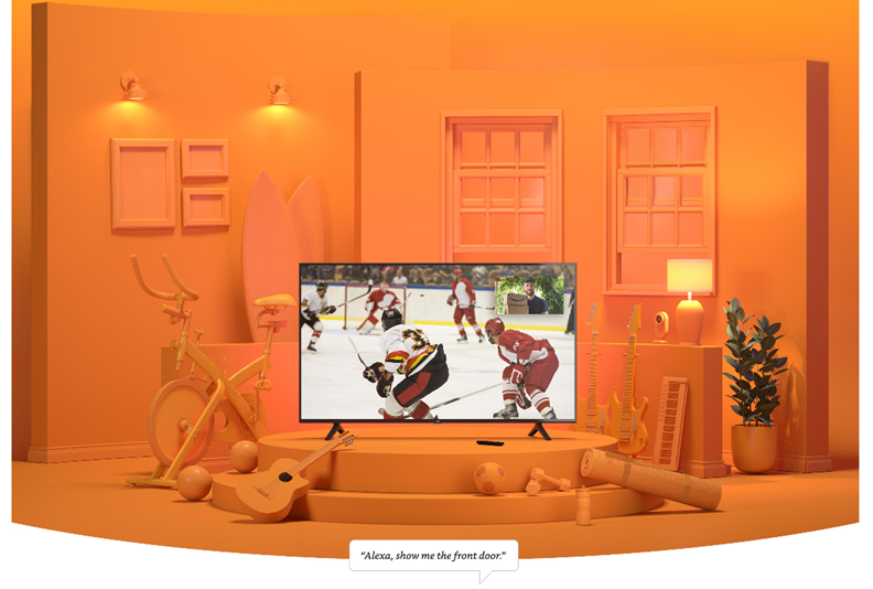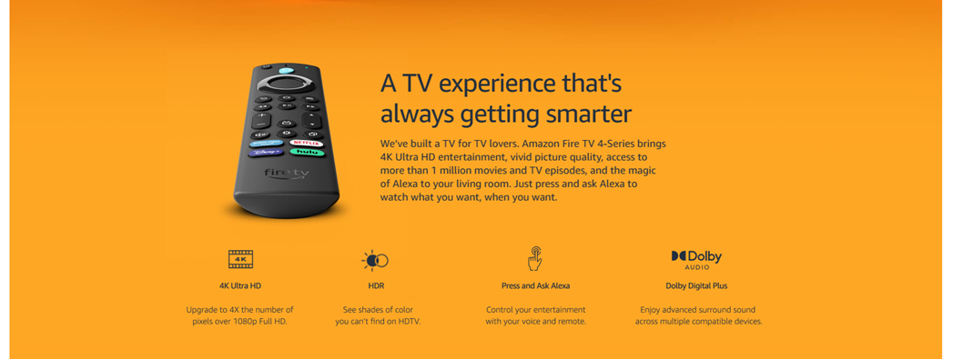 This bundle includes an Amazon Fire TV 43" 4-Series, Sanus Universal Tilting Wall Mount, and Mission Cables Red Remote Cover.