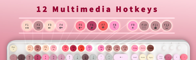 - 【104 Key FULL-SIZE KEYBOARD】13 Easy-to-reach function keys provides a shortcut to your music,emails,multimedia control,web,etc.For instance,you can play the music you want by simply press the Fn+Esc. This Is a Full-Size Keyboard. All 104 Keys Non-Conflict.