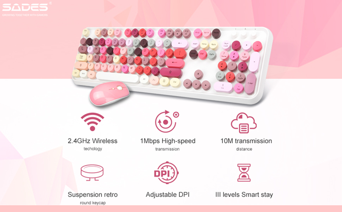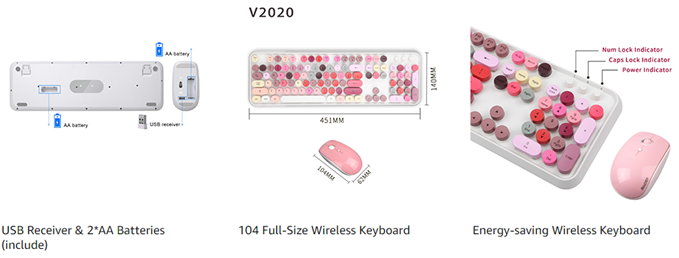 - 【GORGEOUS COLOR RETRO ROUND KEYPAS 】The inspiration of these cute rounded keys come from vintage typewriters offering you visual enjoyment and retro feeling to type. Every keyboard is painted with more than 10 kinds of color to help you be outstanding in the office.The mini Optical mouse is with modern ergonomic design,DPI adjustable(800-1200-1600).