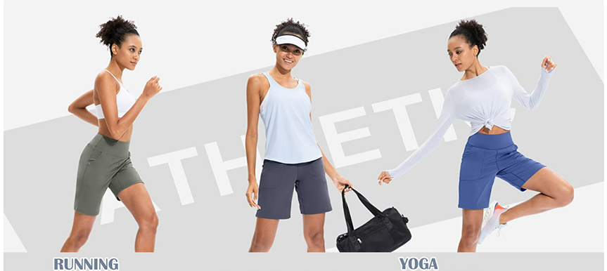 [3 Pockets] The womens bermuda shorts features one back zipper pocket on waistband and two side pockets are deep enough to hold your phone, cards or keys without falling out, free your hands during running or exercise.