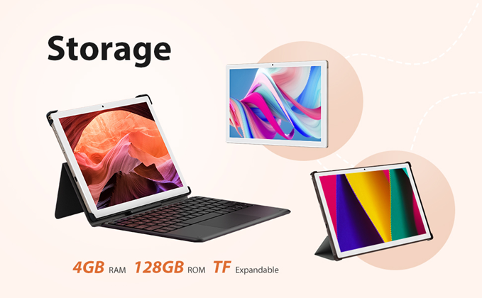 - 【Android 10 Tablet With Dual Cameras】The android 10 tablet comes with 4GB RAM and 128GB interal storage,also up to 128GB of additional storage.5MP front and 13MP rear camera can take photos in the dark with flash, make video calls and record your life. In addition, the tablet has passed Google GMS certification. You can download your favorite apps directly on Google Play.offers live caption, gesture navigation, privacy controls, and full access to Google Play Store,etc.