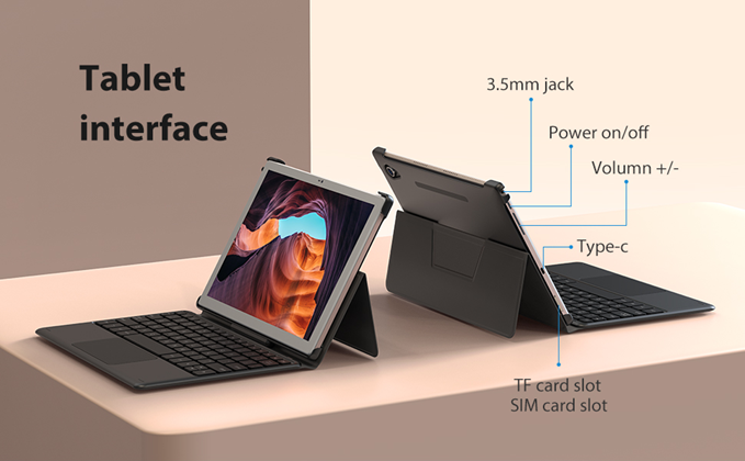 We designed a tablet with a trackpad keyboard.By mounting the 2 in 1 keybord, you can type on your tablet with greater ease anywhere and anytime.It can increase office productivity without problems.