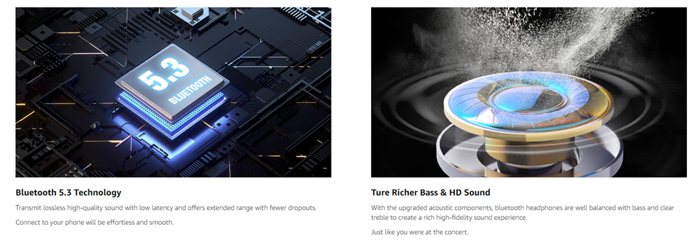 • [Stable Bluetooth V5.3 Connection] Adopting the latest Bluetooth 5.3 technology, CSR chip and superior acoustic component, ensures faster and more stable connection. Boean wireless headphones up to 30ft Bluetooth range in the open space and 10ft in the obstacles space.