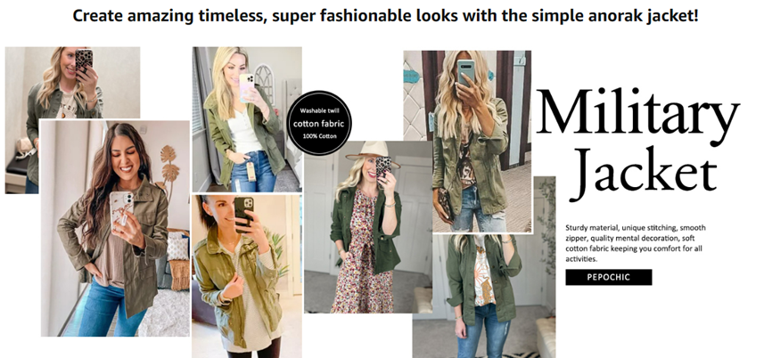 • Textile Technology: The cotton canvas fabric allows the jacket to be lightweight and the perfect staple piece in every woman’s closet; this is the go-to jacket for the changing season