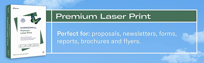 Hammermill Premium Laser Print 8.5” x 11” 24lb copy paper is designed for color-intensive printing or any project that needs to look its best. This premium white printer paper, with a 98 brightness, is manufactured to run in all laser and color printers. It’s premium copying paper that features a heavier weight and an ultra-smooth finish that is specially formulated for superior color images and text. Capable of holding up to 2400 dpi resolution, the Hammermill Premium Laser printing paper provides excellent print contrast and true color reproduction. It’s laser printer paper that produces professional-looking design proposals, brochures, newsletters, forms, reports, faxes, direct mail, invoices, correspondences and full-color presentations. Our 99.99. 000 sheets using Hammermill copying paper on your high-speed digital printer or we will replace your Hammermill paper purchase. We test more than 13.5 million sheets of paper every year to make sure that each sheet is consistent. Then we test our papers on all kinds of printer and copier equipment to ensure that it will work for you, every time, on every machine. Did you know that you are helping to conserve and restore forests when you buy Hammermill paper? “It’s More Than Just Paper” to us and millions of sustainable forestry workers across America, including American family tree farmers. Hammermill printer papers are made with renewable resources from certified sustainably managed forests. We want our business to last for generations and that means taking good care of our environment. MAKE SURE IT’S ORIGINAL HAMMERMILL QUALITY: look for “Ships from and sold by Amazon” at the top of the page, under the product title.