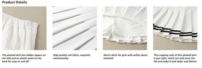 • ❤Design: Cute girls A-line mini skirt, side hidden zipper closure, back elastic waist, easy to adjust waist