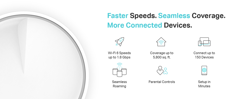 Armed with Wi-Fi 6 technology, Deco whole home mesh WiFi is designed to deliver a huge boost in coverage, speed, and total capacity. Get on the latest mesh WiFi to enjoy the future