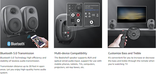 - Control your bookshelf speaker Remotely: handle your bookshelf speaker from the comfort of your couch or directly on the device; combine with bass & treble adjustable function to match your favorite sound.