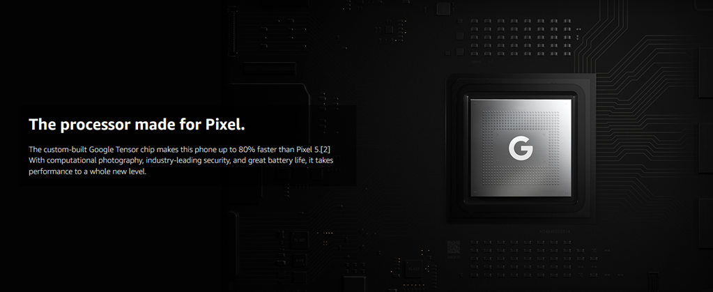• The powerful Google Tensor processor is the first processor designed by Google and made for Pixel; takes performance to a whole new level