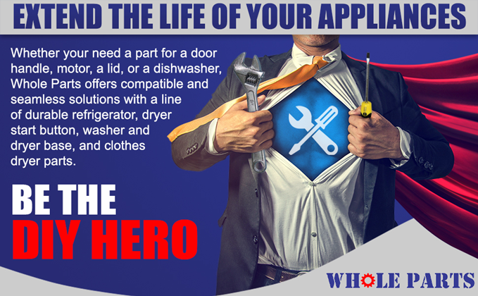 At Whole Parts, we know exactly what you need to get your appliance working again. We are appliance parts supply experts who specialize in kitchen and laundry appliances. Thanks to our tight-knit relationships with parts manufacturers, we have hundreds of new parts made every year and we pass the savings on to you so that you can be the DIY hero of your household.