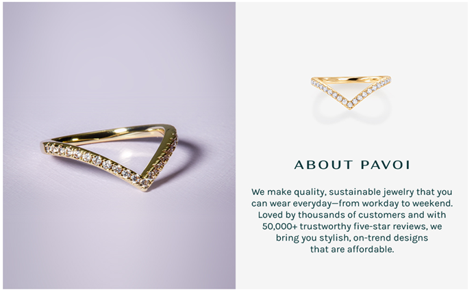 ✦ SUSTAINABILITY ✦ PAVOI is dedicated to sustainability throughout our entire product cycle. Our jewelry is made from 100% recycled materials and we package in 99% recycled and compostable materials. We work to reduce our carbon emissions and offset plastic consumption by removing 275,000 bottles from oceans annually. We are committed to maintain a balanced and eco-friendly business that minimizes our environmental impact. Trust that PAVOI is continuously working towards a greener future.