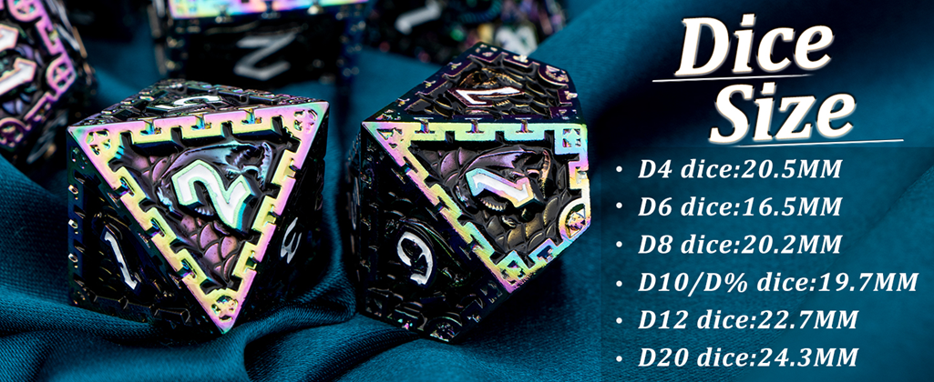 • 【Exceptional craftsmanship】:DND metal dice adopts unique dragon element design. The numbers on the D&D dice are clear and easy to read, with perfect details and well-made. When they are put on the table, they will get a lot of compliments and envy.