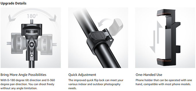 - Base Non-Slip: Upgraded Non-Slip base can help you capture every precious moment even on smooth floors and glass tabletops.