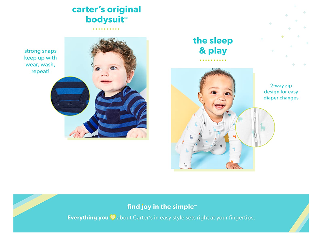 • No tags. No fuss. Just the Carter's quality you know + love, exclusively at Amazon.