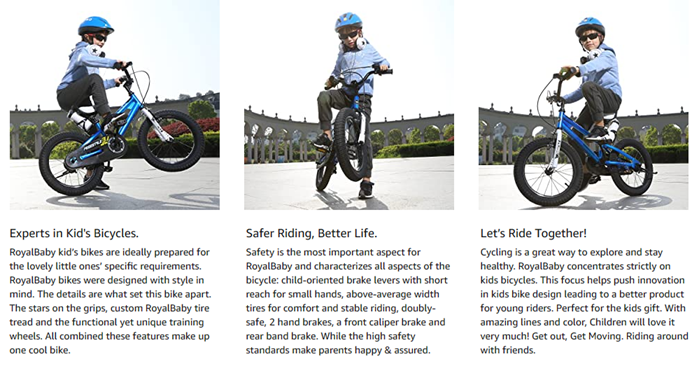 The brand of RoyalBaby kid’s bike was born in 2009. For years, RoyalBaby has been making bikes for children all over the world, creating more fantastic and colorful childhoods for them. “To ensure a safer riding” is always the highest responsibility and unremitting pursuit for RoyalBaby. We pay much attention to the enterprise’s social responsibility. RoyalBaby produces safer kid’s bikes and bring more happiness to children all over the world. Come on, let's join.