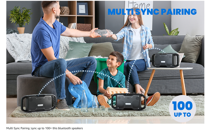 - Multi Sync Pairing: Sync and pair 100+ this bluetooth speakers for a ture stereo surround sound experience ,Bluetooth 5.0 makes bluetooth speakers have faster connection speeds, more stable signal transmission can easily connect your mobile phone and other devices,if you like outdoor party and want to get immense stereo sound,our portable bluetooth speaker will suitable for you