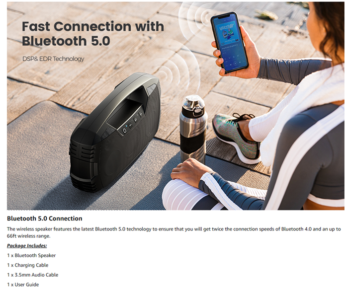 - Bluetooth 5.0 Wireless Speaker: Built with the newest Bluetooth 5.0 chip with EDR technology, this wireless Bluetooth speaker ensures a faster and more stable connection than Bluetooth 4.0. Houl Zallee bass Bluetooth speaker livening up your tailgate party, birthday party, pool/beach party, backyard barbecues, or camping/hiking trips made easier