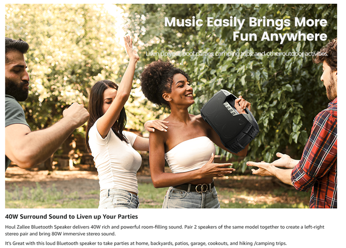 - Epic 32-Hour Playtime- Houl Zallee outdoor Bluetooth speaker delivers up to 32 hours of playtime on a single charge (Actual playtime may vary by the music content and sound volume). Enjoy loud sound with powerful bass and clear vocals at home, in the garage, or outside on the road. Its built-in large-capacity rechargeable batteries can also be used as a power bank to charge phones or other devices, making it a great camping gift