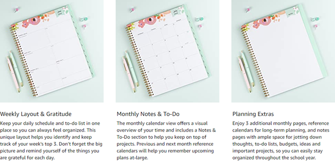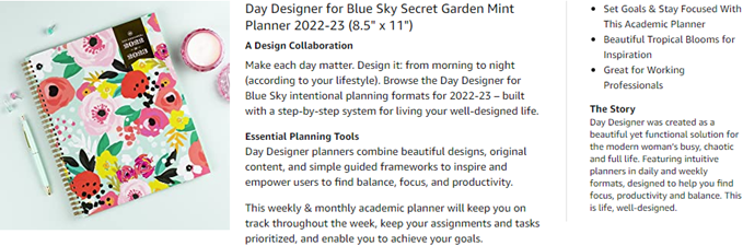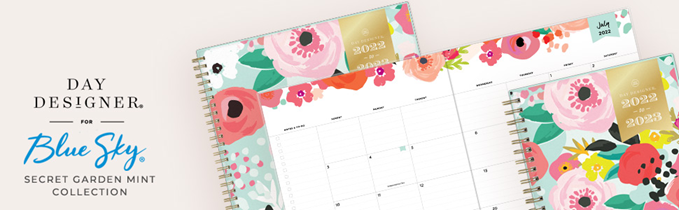 Whether you're a working professional, full-time mom, a teacher or a diligent student, it’s easy to feel overwhelmed and pulled in a million directions. Day Designer for Blue Sky is a simple and easy system created to help you find balance, focus and productivity. This planner isn't magic and it can't live your life for you. But it can, through a simple, guided framework, help you figure out a focus for intentional living. It can be a trusted tool for setting goals, creating a plan and taking action each and every day. This exceptionally built planner exudes quality, design elements and inspired productivity in one well-organized ensemble. It will teach and guide you with a clear path and directions to organize your day, your tasks, assignments, and to-dos to achieve your goals. This academic planner is ideal for business professionals, teachers, professors, administrators, students or anyone involved in education. You will feel more organized and in charge of your hectic schedule, while carrying this harmoniously built Day Designer for Blue Sky planner. The Secret Garden Mint pattern with gold foil detail will make a subtle fashion statement with friends and peers around you. A well-designed day is a well-lived life! Blue Sky creates modern and sophisticated organizational planners and calendars to fit the scheduling needs of busy people - whether business professionals, college students, teachers, or anyone with appointments to make note of. Keep your life organized with our full line of products including desk pad calendars, wirebound tabbed weekly and monthly planners with contacts and notes pages to accommodate your scheduling needs, and laminated two-sided wall calendars, all in a variety of colors and patterns to suit your lifestyle and personality.