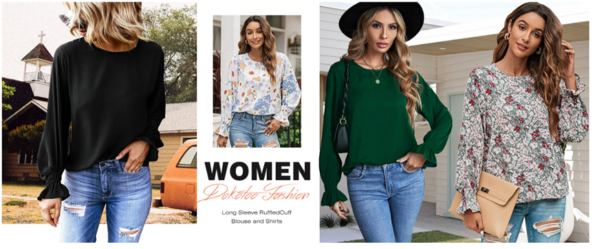 Dokotoo Womens 2023 Summer Long Sleeve Ruffle Bubble Sleeve Casual Loose Shirts Tops and Blouses