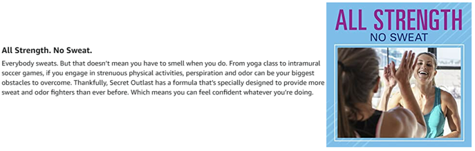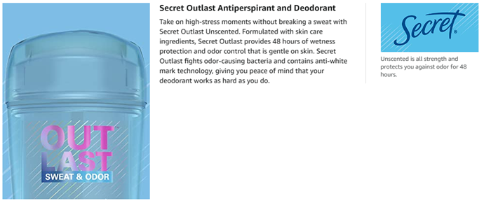 • Don't waste a moment worrying about sweat. Secret Outlast Antiperspirant Deodorant is all strength, no sweat