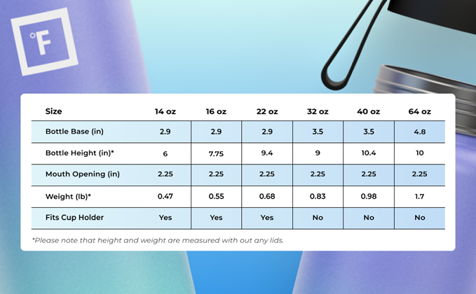 • INSULATED SPORTS WATER BOTTLE: Goodbye sweat! The double wall insulation makes the Iron Flask sweat-free! It keeps your drink COLD for up to 24 hours, and HOT for up to 12 hours. *NOTE: ONLY the 14 Oz, 18 Oz, & 22 Oz fit in cupholders*
