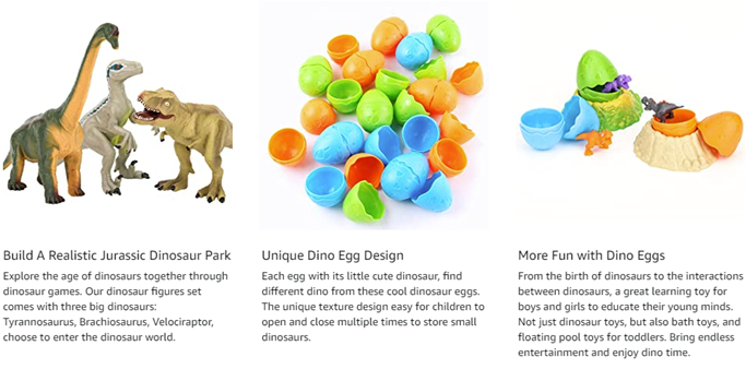 - 【Build Kids Dinosaur World】Dino toy set contains 3 large dinosaurs(Tyrannosaurus, Brachiosaurus, Velociraptor), 18 dinosaur eggs, 18 adorable random dinosaur babies and 6 dinosaur egg slots. Cute dinosaur toys stimulate children's interest to build their own dinosaur world, discover different mini dinosaurs from dino eggs and learn the animal hatching process