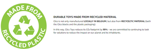 PREMIUM QUALITY - Clics are super strong, safe and durable toys. Our toys are also conform to CE, ASTM and EN71. Therefore our toys are safe for children ages 3 years and up. Clics is not only produced LOCALLY IN BELGIUM, but is also made with RECYCLED PLASTIC (both the Clics blocks and the plastic packaging). In this way, Clics Toys lowers its CO₂ footprint with 90%- we are committed to continue to look for solutions in the future to reduce the ecological burden on our planet.