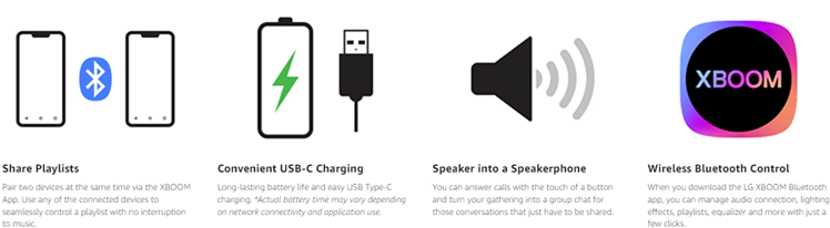 - The LG XBOOM App lets you run the party without constantly running over to your speaker—control audio, lighting effects, playlists, equalizer, and more, all from the palm of your hand via a Bluetooth connection