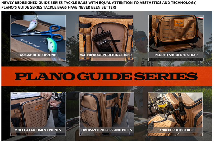 • PLANO GUIDE SERIES 3700 XL SOFT TACKLE BAG: The largest Plano tackle bag ever. Features a hard-backed construction of rugged 1680 Denier fabric that will hold its shape for years and oversized molded zippers for durability.