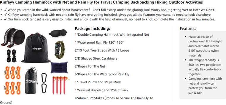 - ☀【Everything Included】: Our camping hammock set includes a Double Hammock with Net and Rain Fly(120*120 Inches), 2*10 Feet Tree Straps with 13 Loops(600 lbs), 2*D Shaped Steel Carabiners, 2*Net Ropes, 6*Guylines, 4*Aluminum Stakes, 1*Travel Pillow, 1*Eye Mask, 1*5 In 1 Survival Bracelet, 1*Pocket/Stuff Sack, 1*Installation Manual. No need to look elsewhere!