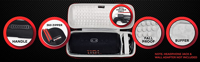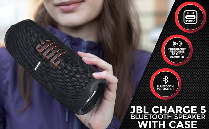 - PROTECTIVE HARDSHELL TRAVEL CASE INCLUDED: Along with your new JBL Charge 5 Speaker you will also receive a durable hardshell travel speaker case with a mesh pocket for your USB cables to keep everything tidy and well protected. Strong, durable and yet lightweight, it is great for shielding the Bluetooth speaker from everyday tear and wear even when you carry it with you in your backpack or travels.