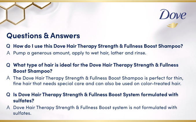 Perfect for fine hair that deserves extra care. Dove Hair Therapy Strength & Fullness Boost Shampoo and Conditioner System is designed with serum and retinol, which strengthen hair from root to tip and instantly restore hair fullness. This sulfate-free system features potent moisturizers and nourishing ingredients that deliver 2X visibly fuller, thicker hair*.