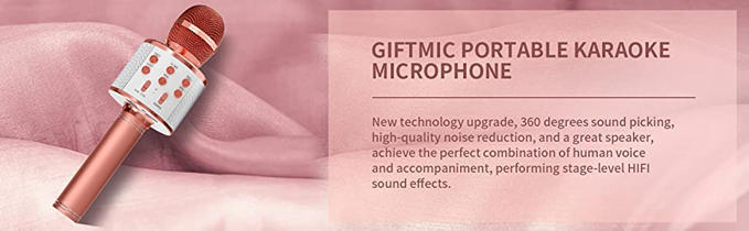 - 【Amazing Gifts】Beautiful appearance, comfortable feel, suitable for kids and adults. Perfect for KTV singing, gathering singing, family singing, travel singing, car stereo, instrument recording, interviews and live, etc. GIFTMIC Bluetooth microphone is a great gift to bring surprises and joy.