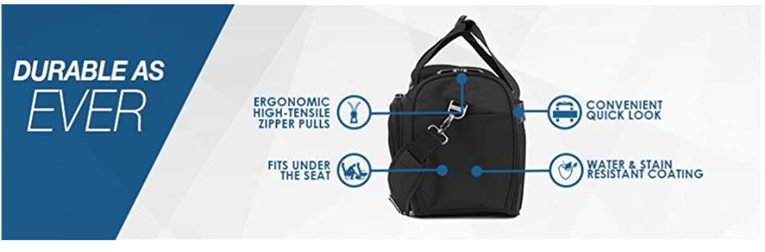 • Polyester fabric with stain resistant, water repellant duraguard coating and ergonomic, high tensile strength zipper pulls provide lasting durability