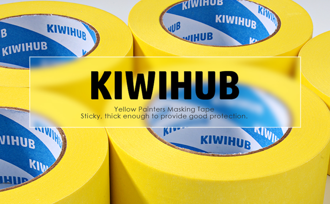 KIWIHUB Yellow Painter's Tape,1 inch x 60 Yards - Medium Adhesive Masking Tape for Painting,Labeling,DIY Crafting,Decoration and Medium Adhesive Masking Tape for Painting,Labeling,Automotive Refinish
