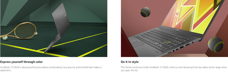 With standout colors and a color blocking Enter key, ASUS VivoBook 15 OLED adds flair and dynamism to daily computing. With its AMD Ryzen processor, VivoBook 15 OLED provides the power you need to get things done. It also features fast data speeds of an SSD, giving you the best of both worlds in order to boost productivity. For Free Windows 11 upgrade eligible devices, visit ASUS Windows 11 website for more information.