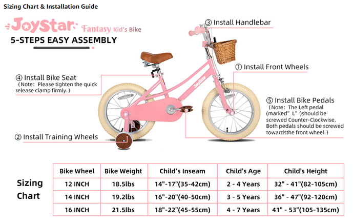 JOYSTAR Fantasy Girls bike is a perfectly comfortable bike, suitable for your little one to use in the parks and neigborhood. This children’s bicycle is designed with an easy stand over frame that has be a comfortable fit for many young riders around the world.