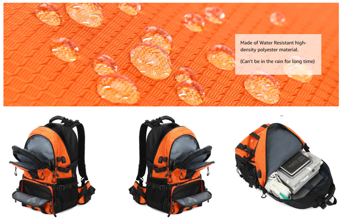 • *Waterproof and durable: including waterproof materials. The Camping Backpack is made of super thick, tear resistant, waterproof and wear-resistant polyester fiber. All stress points are reinforced with joint reinforcement to prolong their service life