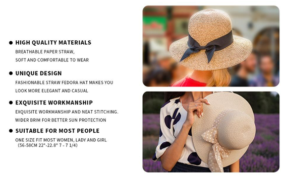 Foldable and packable:The straw sun hat can be folded up and put into suitcase or handbag for beach holidays, cruise, travel, safari or other summer outing.