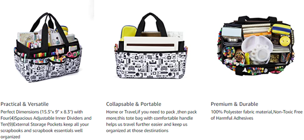 • Bag-lady Ultimate Choice - This utility tote bag can be a scrapbook storage box,planner caddy kids art bag,Yarn Tote,Spinning ,teacher tote bag,portable office organizer sewing storage organizer,nursing equipment bag,file tote bag journal notebook tote bag paint & More.