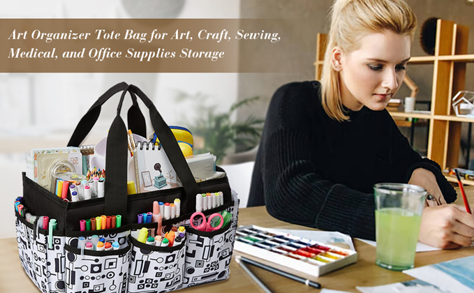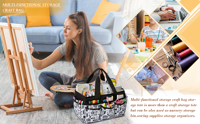 • 1. MULTI-PURPOSE - Wide open design with multiple Pockets around this canvas art craft caddy allows it suitable for scrapbook storage,Art &Craft,sewing tools,teaching staff,office supplies,make-up,etc.Moreover,An additional solid PP board in the bottom makes the craft storage bag good in shape and stable in structure.