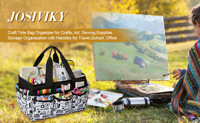 Craft Organizer Tote Bag, Art Caddy Organizer with Handles,Multi-Functional Craft Caddy for Sewing & Scrapbooking Supplies,Travel Art Box JOSIVIKY (White)