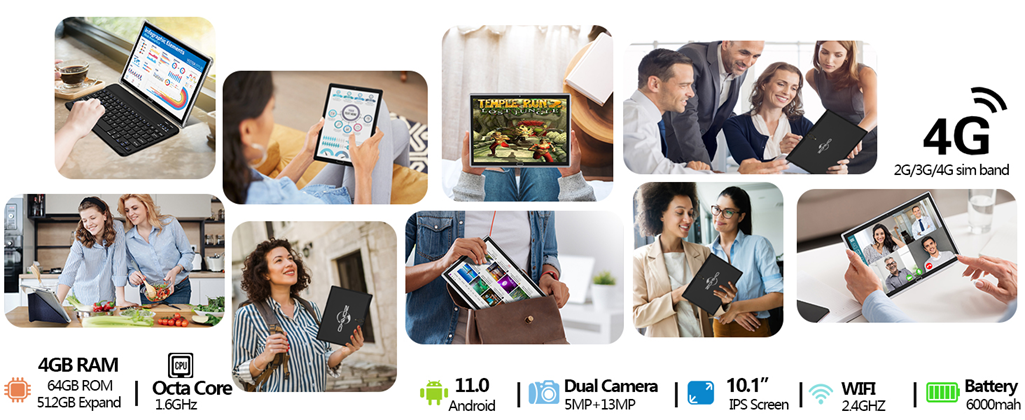 - [4G LTE calls and Dual Wifi]: 2 in 1, perfect combination of mobile phone and tablet. With the 4G phablet feature, Our tablet has Dual SIM capabilities that allow you to have two phone numbers in one device. You have both 2.4G Wi-Fi and 4G/3G/2G options for internet connectivity. Whenever Wi-Fi connection isn't available, you can rely on your data plan to connect to the internet. Notice: SIM CARD is NOT included.
