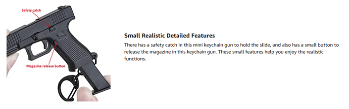 【Usages】Small pistol keychain can be used as a keychain or bag pendant, also as an ornament in your room or office. In holiday or party, it is an ideal gift.