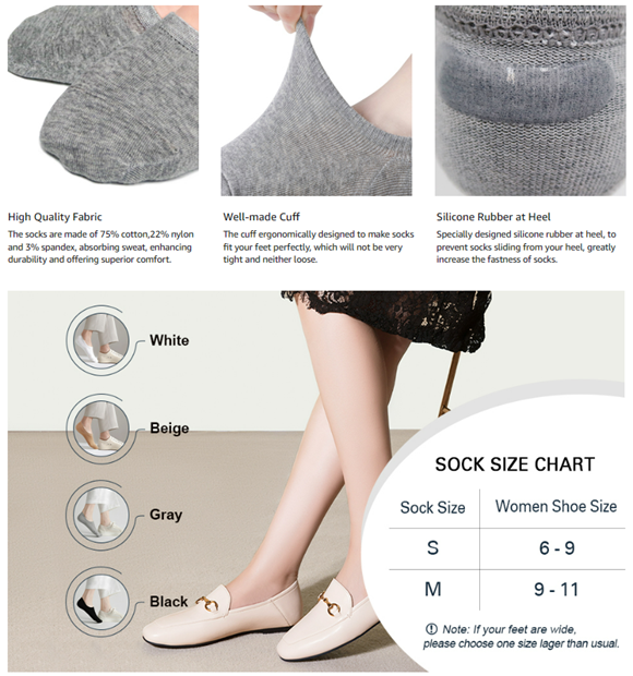 • 【No Show】No show and low cut invisible design goes well with most shoes such as sneakers,loafers and casual shoes. (NOTE: This sock is not suitable for a super low flat shoe) The short no see socks are available in four basic colors: black, white, nude and light gray, and 6-9/9-11 2 size ranges providing you more choices.