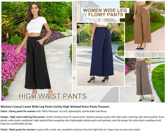 Material : Wide leg pants for women is made of 100% Polyester, palazzo pants is so soft, comfortable and wrinkle free. Womens wide leg pants is stretchy and lightweight, comfortable to wear all the year around.