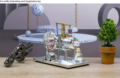 It’s an amazing conversation pieces on your desk, decorative and impressive. It's funny to see people's looks and reactions when they squeeze a little shot for this Stirling engine. Light the alcohol burner, let it warm the glass cylinder for 20 seconds, and then give the wheel a gently push, it will run like a charm. All of your guests want to know what happened, ice-breaking success. What a marvelous toy! it's proven to be a conversation starter to impress your visitors. It’s a cool piece of art even just stands on your desk.